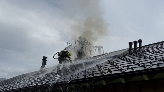 Der Einsatzleiter der Feuerwehr Parschallen-Aich, Thomas Schindlauer, entschied sich nach den ersten Löschversuchen zur Nachalarmierung der Drohnengruppe des Feuerwehrabschnitts Mondsee: „Die Wärmebildkameras der Drohnen zeigten genau die Brandherde unter dem Dach, somit konnten die Atemschutzträger vom Hubsteiger aus zielgerichtet das Dach öffnen und die Glutnester löschen“. Der über fünf Stunden dauernde Löscheinsatz forderte die Atemschutzträger am Dach extrem. Aus diesem Grund wurden weitere Feuerwehren mit Atemschutzträger nachalarmiert.